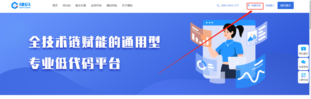 響應(yīng)開發(fā)者用戶的需求和呼聲,捷碼近期調(diào)整運營策略,開放了平臺免費注冊,將捷碼開發(fā)平臺的強大功能和無形資產(chǎn),賦能更多的開發(fā)者實現(xiàn)高效、敏捷開發(fā),快速完成項目開發(fā)和應(yīng)用。立刻點擊官網(wǎng)“免費注冊”,免費體驗VIP賬號的豐富功能。