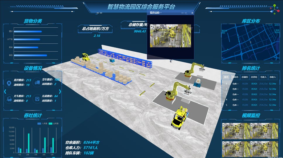 物流作為融合“信息、運輸、倉儲、園區(qū)、郵政、制造和供應鏈”等的復合型產(chǎn)業(yè), 近年備受關注。根據(jù)調(diào)查顯示,整個物流行業(yè)呈現(xiàn)出“規(guī)模大、效率低”的特征,隨著智 能化應用落地和政策文件的廣泛支撐,新技術正在深刻重塑物流產(chǎn)業(yè)。從物流快遞收派件 場景到中間樞紐、網(wǎng)點乃至物流倉儲園區(qū),智慧物流園區(qū)綜合服務平臺提供保障貨物快速 運輸、物流過程安全管理的智能解決方案。 智慧物流園區(qū)綜合服務平臺主要圍繞物流園區(qū)三維化、智能化和人性化進行建設,對 運輸車輛及物流倉儲,通過視覺智能識別車位是不是空閑,卸車裝車作業(yè)是否在正常進行, 以及場站內(nèi)堆積度是不是飽和,通道有沒有被堵塞,原本需要使用人力現(xiàn)場巡檢的工作, 均由攝像頭完成實時識別。面向快遞行業(yè)貨物堆積的問題,爆倉識別算法檢測到倉位出現(xiàn) 數(shù)量爆滿,及時提醒工作人員盡快轉(zhuǎn)移快件,避免爆倉。員工拆揀存在過于暴力難以取證、 貨物損壞難以管控、貨物倉儲安全難以發(fā)現(xiàn)等問題,提供物體高拋檢測、煙火檢測、包裝 破損檢測、包裹移動識別等能力。智能監(jiān)測司機專注行為,避免安全事故。以三維場景為 依托,以智慧物流園區(qū)數(shù)字底座為核心,融合各個業(yè)務應用子系統(tǒng),將物流園區(qū)各部門分 散、孤立的信息匯總處理形成信息管理鏈,使物流園區(qū)管理真正成為統(tǒng)一體,結合物聯(lián)智 能控制及時實現(xiàn)物流園區(qū)智能化管理,實現(xiàn)事前“精準感知、積極預防”,事中“實時感 知、快速響應”,事后“快速調(diào)查、深度分析”。