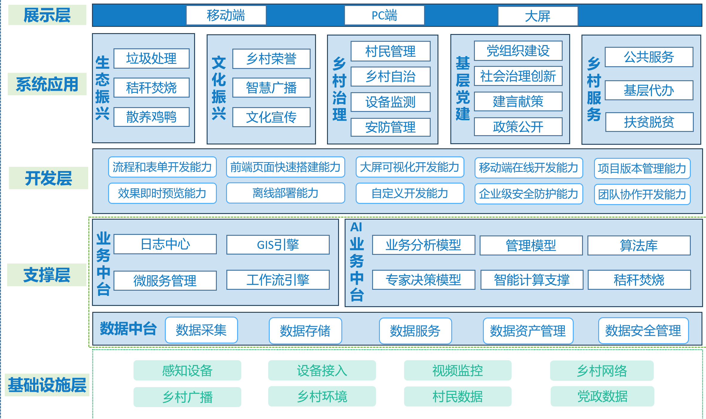 系統(tǒng)可支持針對(duì)不同鄉(xiāng)村的需求,靈活配置定制業(yè)務(wù)模塊,滿足不同場(chǎng)景的應(yīng)用需求,易于后期定制化開發(fā),節(jié)省開發(fā)成本和減少周期。